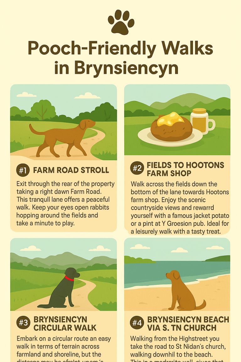 Gwens House – Restored 1800s Quarryman’s Cottage, Brynsiencyn, Anglesey Nestled in the peaceful village of Brynsiencyn, Gwens House combines the charm of an 1800s quarryman’s cottage with modern comforts. Ideal for couples, families, or friends, it sleeps four and welcomes well-behaved dogs. Layout & Sleeping Arrangements Main Bedroom – Double…